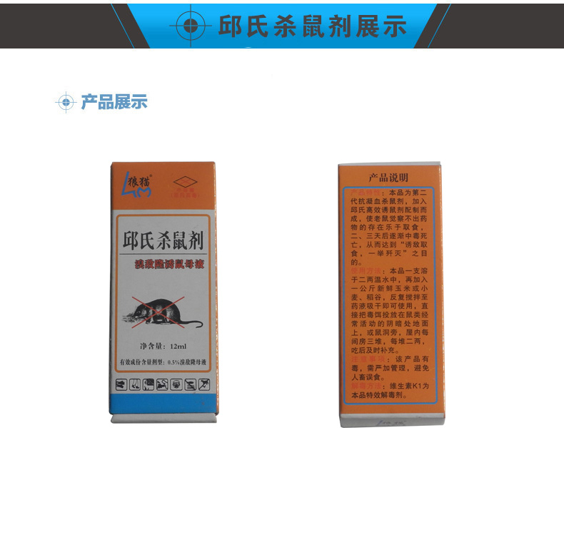 本產品 屬于慢性鼠藥取食2、3天才中毒身亡。