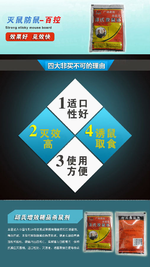 本品適口性好,無(wú)二次中毒現(xiàn)象。